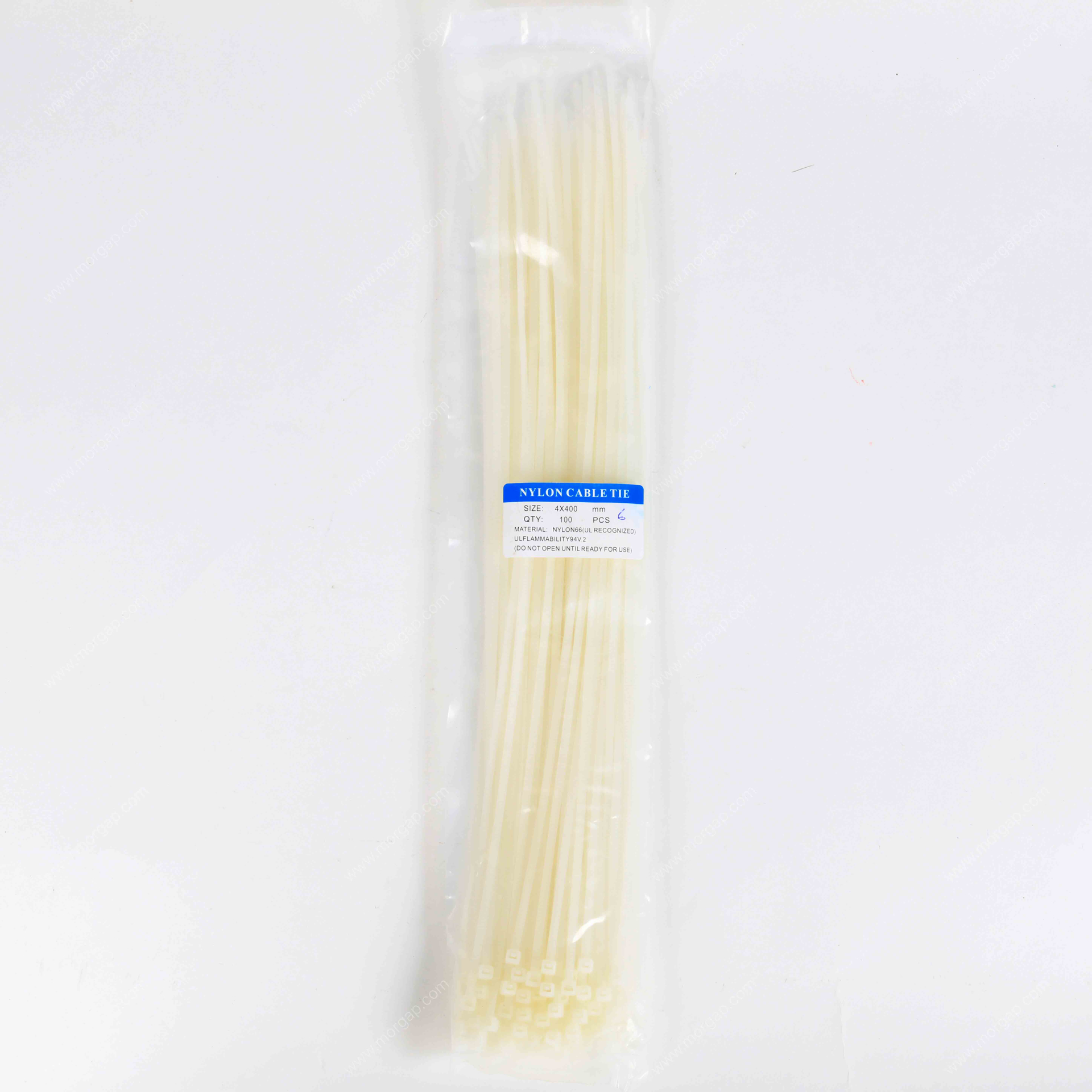 روابط متعددة الأغراض من النايلون - (100 قطعة) 4 × 400 مم. أبيض