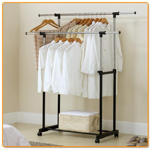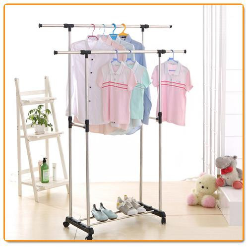 حامل ومنظم ملابس كبير مزدوج قابل للتعديل مع عجلات