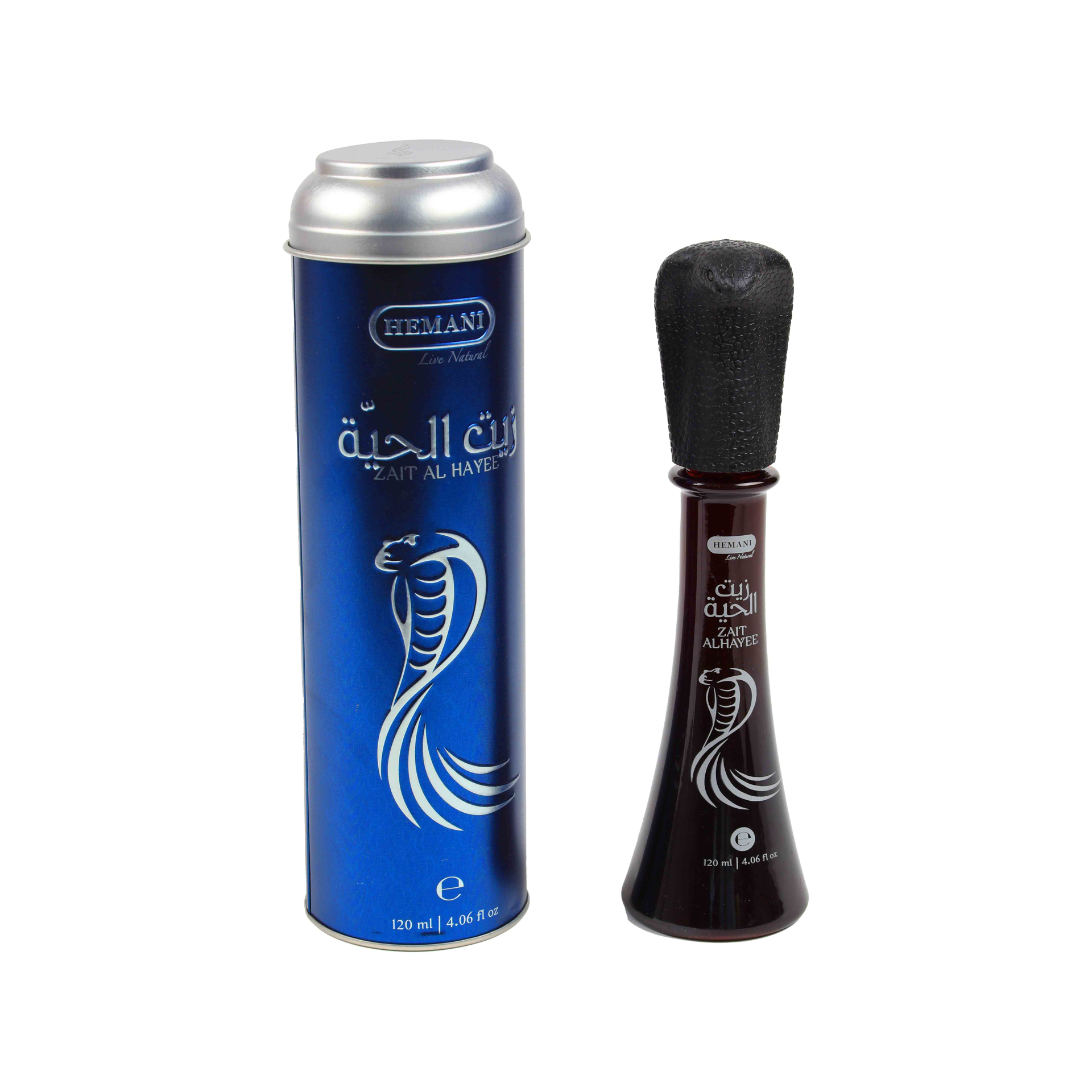 HEMANI SNAKE OIL ZAIT AL HAYEE HAIR CARE 120ML Zait Al Hayee Snake oil by Hemani is a blend of pure, vegetable oils. The name "snake oil" comes from a proverb, saying, "The hair will grow like a snake." No additions of snakes are added. Zait Al Hayee Hair Care Oil by Hemani is a mixture of different natural vegetable oils with special, nourishing properties for the hair and hair follicles. The hair is strengthened, protected and nurtured by the oil. Improved hair growth can be the result of regular use. Zait Al Hayee hair oil is also recommended for beard care. Snake oil Zait Al Hayee prevents split ends and combats dandruff and hair loss. All of the serpentine oil components are 100% natural and are extracted by cold pressing so that no alteration of the chemical structure takes place and thus all properties for maximum effect are preserved. Containing oils: Sweet almond oil Castor oil Avocado oil Sesame oil Coconut oil Argan oil Arugula oil Soybean oil Quantity: 120ml Suggested applications: 1. Night Hair Wrap: Apply the Hemani snake oil Zait-Al Hayee to the dry scalp, gently massage it in and leave it over the night. The next morning, wash the hair with shampoo. Perform this application once a week. 2. Day Hair Wrap: Apply the snake oil to the damp hair and massage well, then wrap the hair with a warm towel (Give a wet towel for a few seconds in the microwave.).Leave for one hour and then rinse. Perform this application once a week. 3. Mix it with shampoo: When you wash your hair, just mix a small drop of snake oil with your shampoo. 4. Dry hair: For more shine in dry hair, massage a few drops into the hair tips and the lower area of the hair. Ingredients: Castor Oil. Sesame Oil. Mustard Oil, Olive Oil, Laurel Leaves, Jatamansi, Cyperus, Alkanna Tinctoriat Oil, Santalam Album Oil