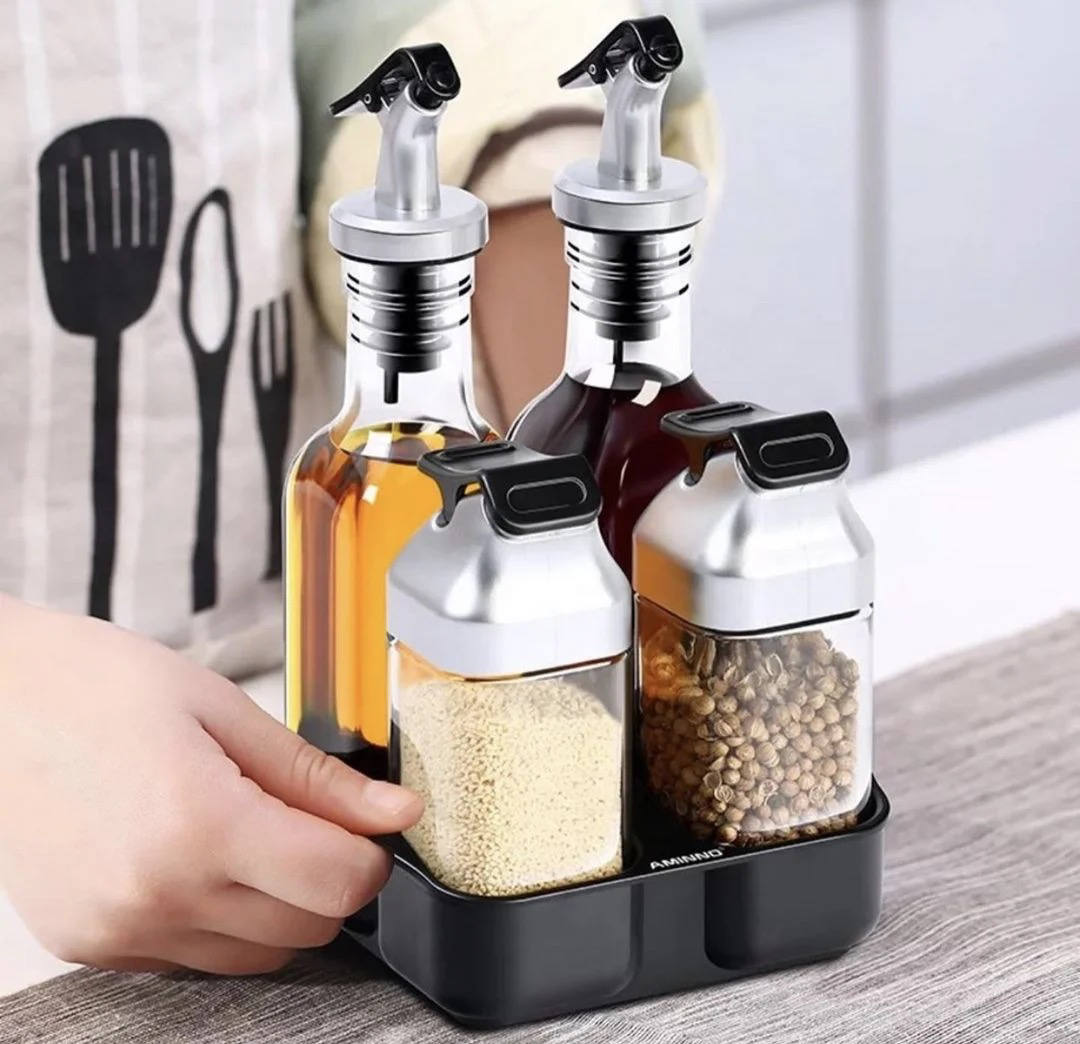مطبقية طقم بهارات غطاء شفاف 4 قطع