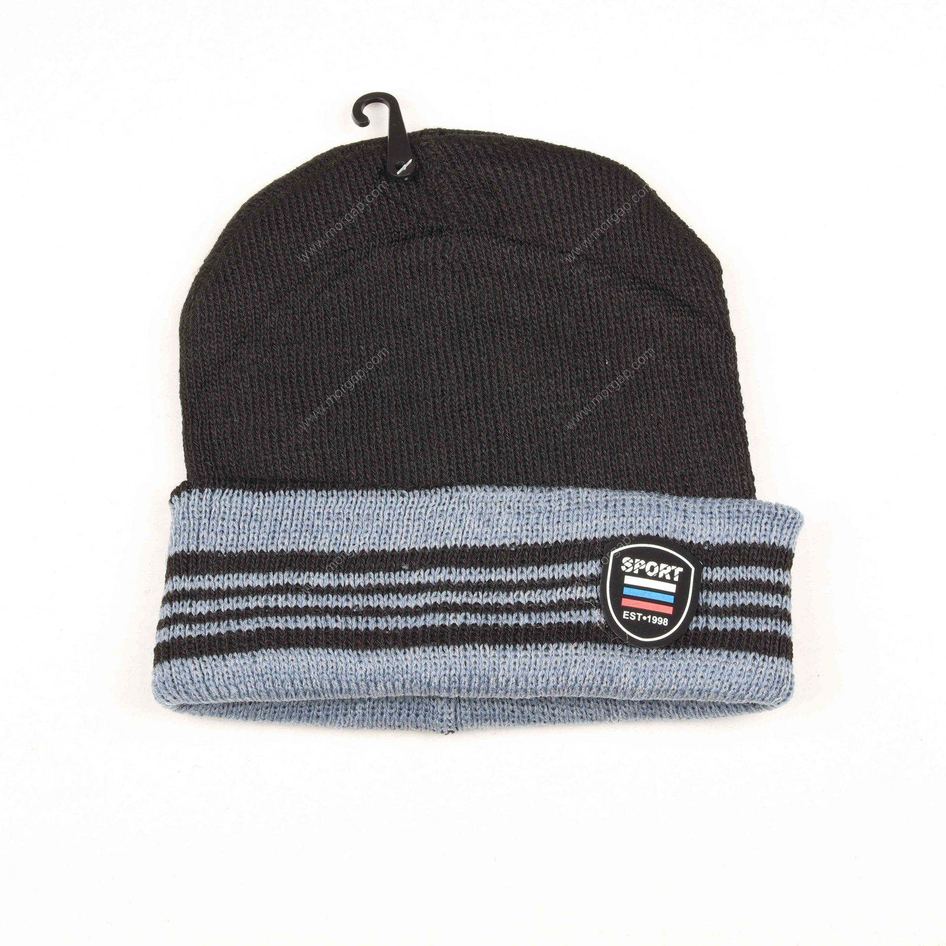 قبعة حياكة من الصوف شتوية مع كرة الفراء باللون الرمادي