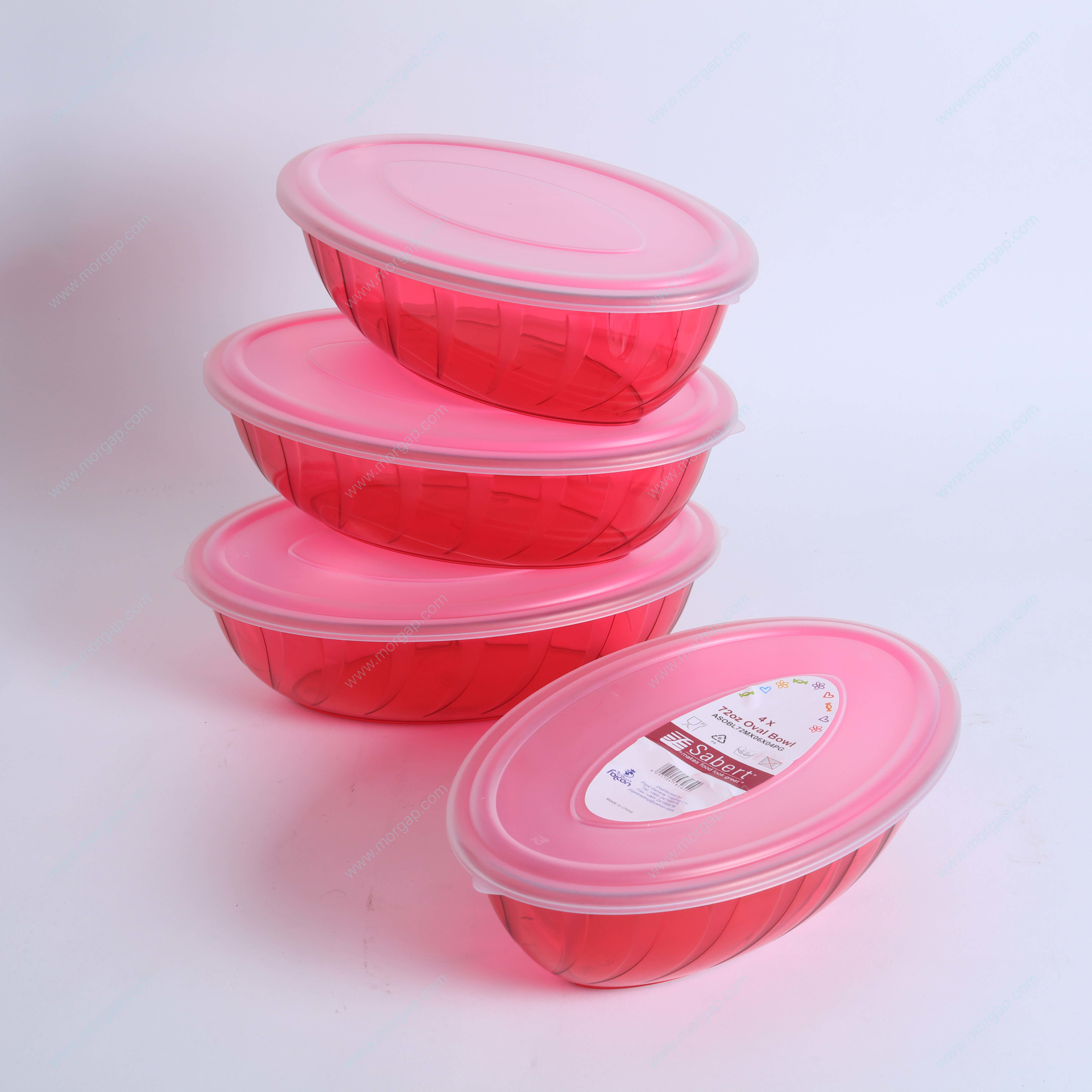 وعاء بيضاوي بلاستيك شفاف أحمر اللون 4 قطع 72 أونص
