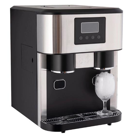 Production volume: approx. 15-18 kg / 24h Water tank capacity: 1.8 litres Ice capacity: 600 g 2 ice cube sizes (Small, Large) 3-in-1: Ice Cubes, Crushed Ice and Ice Water Refrigerant: R600a