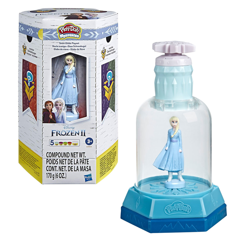 This surprise toy set was inspired by the magic of Play-Doh creative toys and the Disney Frozen 2 movie. This Play-Doh Mysteries Frozen Elsa set is also a fun unboxing toy for kids 3 years and up that features surprise Play-Doh tools. You'll begin your adventure by first finding the Elsa figure and 5 cans of Play-Doh compound. Next, have fun opening the hidden panels and discover surprise Play-Doh tools featuring both old and new Frozen characters. With 1 standard 2-ounce can and 4 small 1-ounce cans of Play-Doh compound, kids have the colors they need to start their adventure. For kids who love Frozen arts and crafts and squishy toys like modeling clay, this set makes a great rainy day activity or gift for kids! Copyright Disney Hasbro, Play-Doh, and all related properties are trademarks of Hasbro.