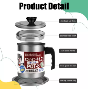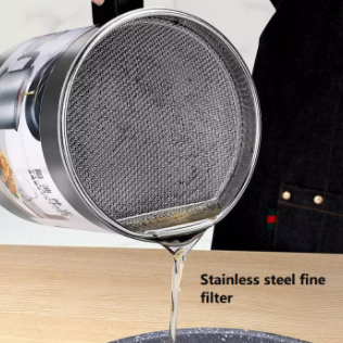 Stainless Steel Cooking Oil Storage Pot with Strainer Oil Filter Mug