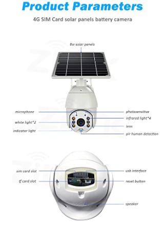 1080P 4G SIM card solar camera 8W panel WiFi outdoor PTZ H.265 Remote control: you can view the camera on your mobile phone anytime, anywhere Compatible with 6 18650 batteries: ultra-low power consumption, long standby time and intelligent power saving function, pure battery, standby time more than 180 days. With solar charging function Solar PTZ Camera with 3G 4G SIM Card No need WiFi network, use SIM card network.