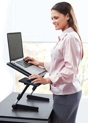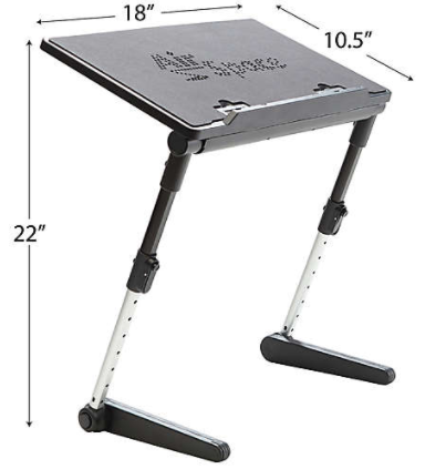 Lightweight and adjustable design Fully adjustable to 22" high Now you can work while standing, sitting or reclining Work in the position that's perfect for you Folds flat for easy storage Measures 18" L x 2.38" D x 10"-22" H Weighs 4 lb. 8 lb. weight capacity
