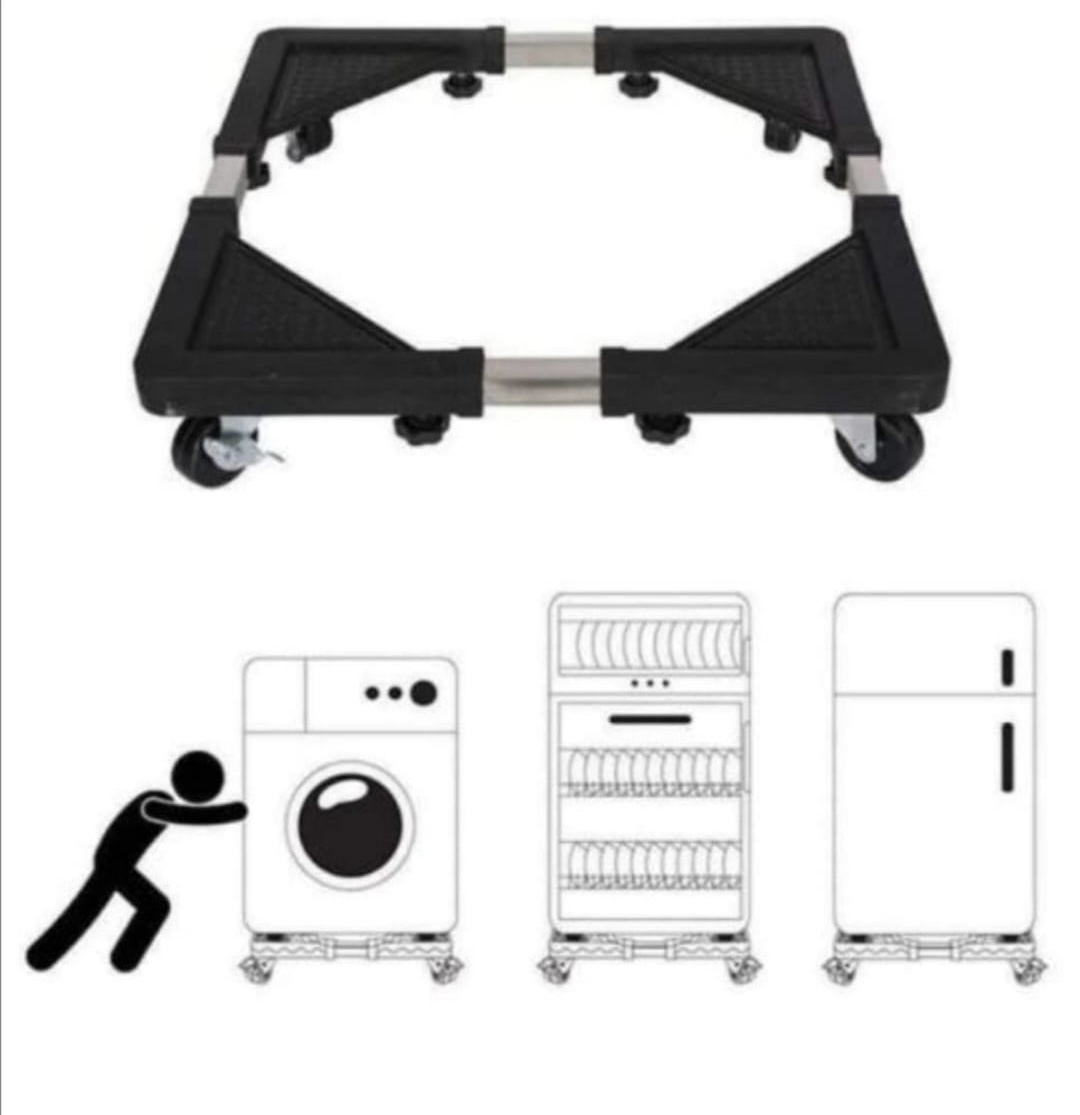 adjustable washing machine trolley for all top load machine. Suitable For All Brands Of Of Top Load Washing Machine. maximum load capacity 138 kg. Suitable for placing heavy object such as washing machine, refrigerator, sterilizing cabinet and air-conditioner Features: maintaining ventilation of the bottom of the object, anti- moisture,anti-rust and easy to be moved and cleaned. Material: , rubber universal wheels, metal zinc-plating tube. Function: Smooth and firm,adjustable dimension and convenient movement. Quality: ultra-strong rigidness,press resistance and anti-corrosion.