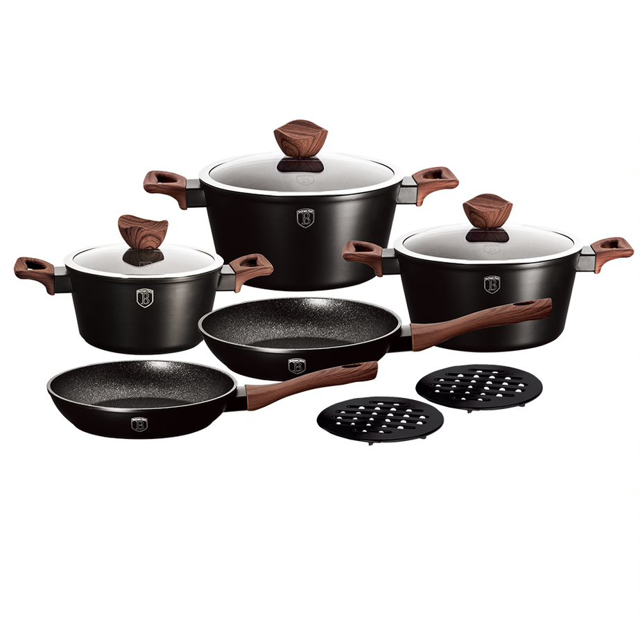 BH 10 pcs Frypan 20+ Deep Fryer 24 + Pots 20+24+28 + 2 Pcs bakelite Mats Burgundy