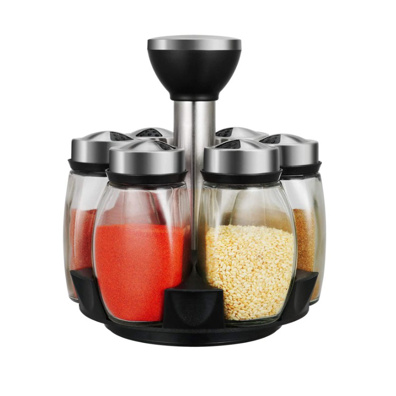 Cruet Set Seasoning Container Sauce Jar Condiments Salt Jar Revolving Spice Rack