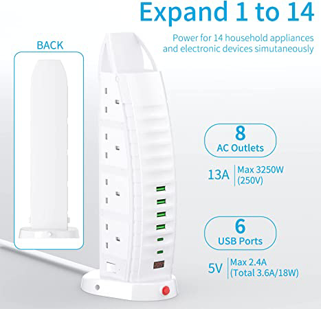 This sail- boat shaped extension comes with 2 switches, 6 USB Ports, & 8 Sockets.