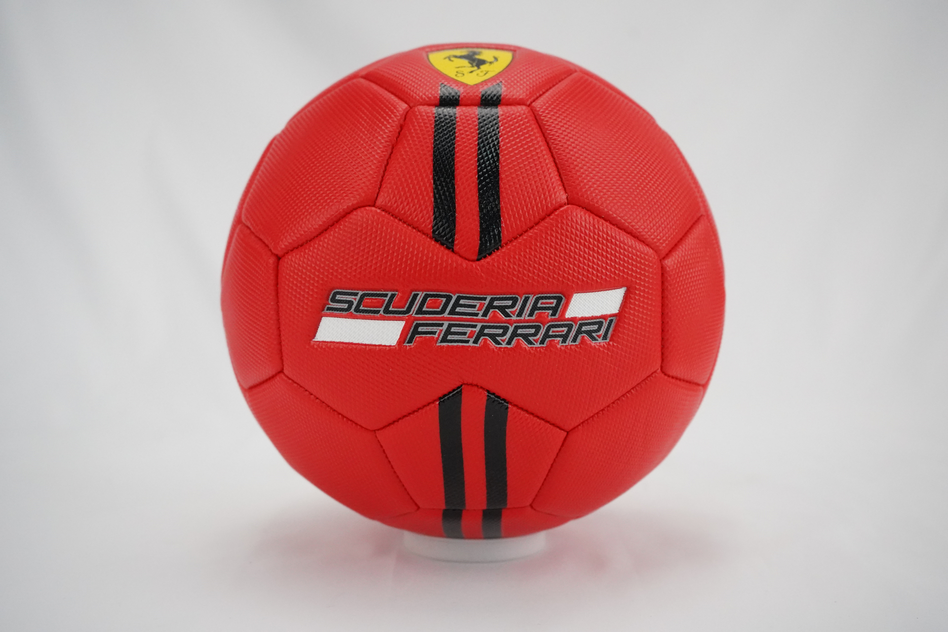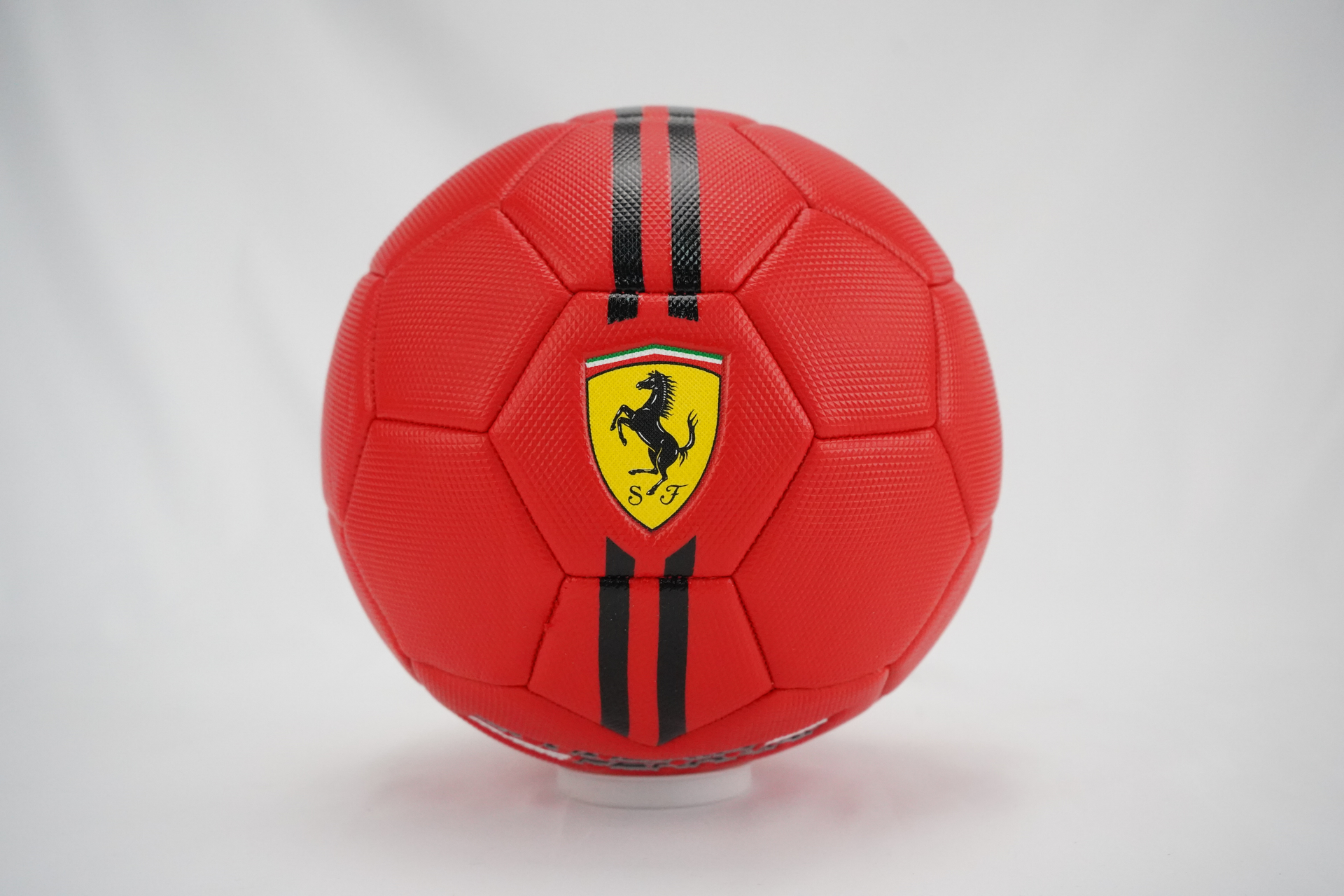 - New Ferrari Football, the special appearance is designed to resist wear and last longer using a stitched design on the machine to provide maximum durability and long-lasting performance. Features: Ferrari soccer ball with a distinctive design Made of rubber - Nylon cover - water resistant - Perfect gift for soccer fans