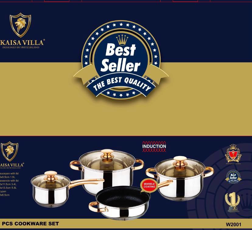 KAISA VILLA W-2001 Best Quality Set of 7 stainless pot & pan set(copper col/body&cover)