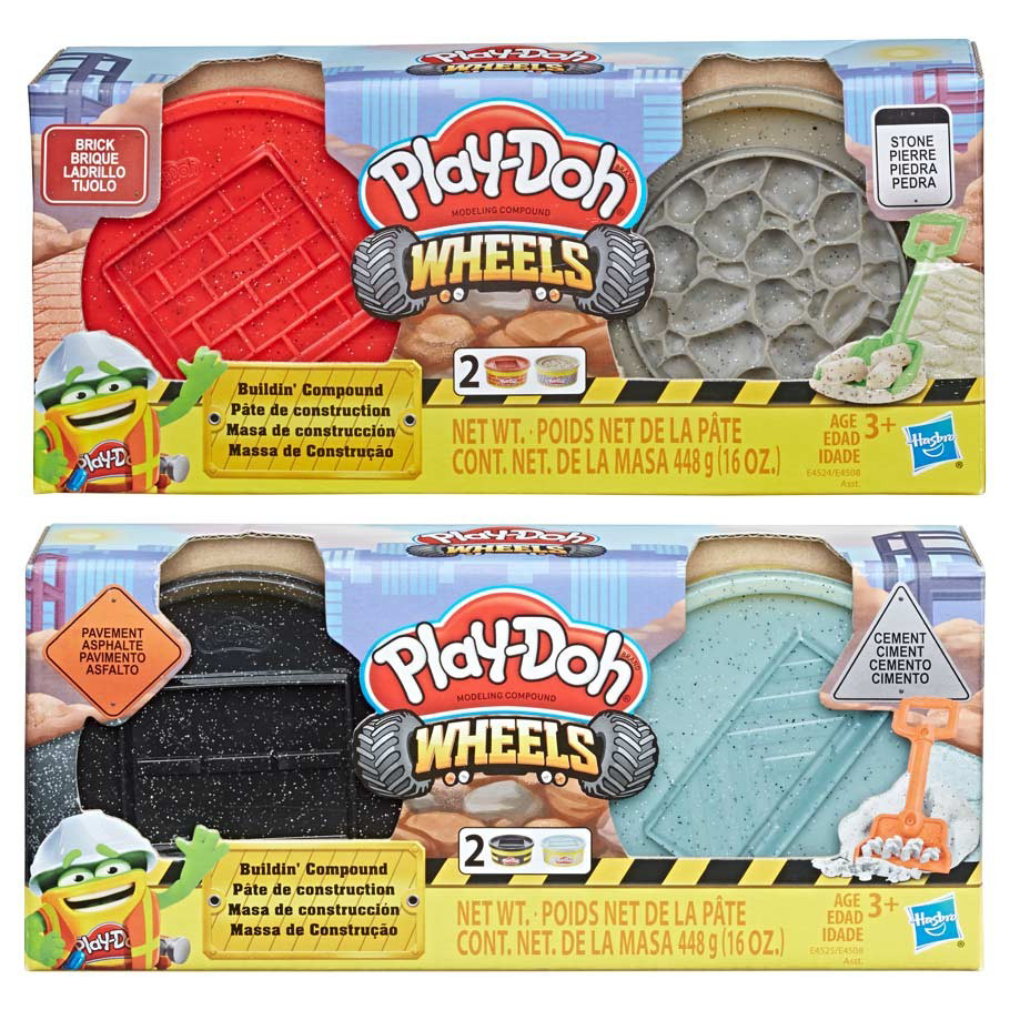Help little workers ages 3 and up get busy building, constructing, and demolishing almost anything they can imagine with these special Play-Doh compounds. It's the quality non-toxic Play-Doh compound we all know and love with glittery specks mixed in to look like building compounds! The 2 extra large cans each hold 8 ounces of compound, and each can has a stamper molded into the lid. These 2-packs of Play-Doh cans also come with a shovel tool for scooping and smashing the coumpounds. You can really help build imaginations by using these compounds with any Play-Doh Wheels construction toys.