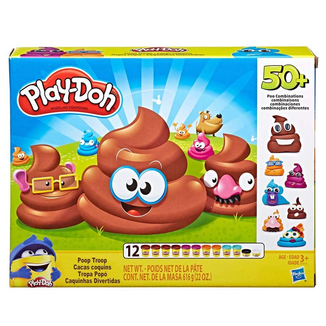 Who's in your Poop Troop?! From giggle-worthy poop monsters to creations like the famous emojis, kids can create a rainbow of their own hilarious Play-Doh characters. You might make a face at the idea, but making silly faces for your characters is literally what it's all about! To start the fun, use the poo mold, tools, and Play-Doh colors to create your character's body. Grab the eyes, arms, mouths, and other accessories and plug them in different places to make all kinds of silly faces. Mix them up for a giggling good time again and again, and don't forget to clean up after yourself! • Includes 2 ears, 2 pairs of arms, 4 sets of eyes, 3 noses, hat, poo mold, decorating tool with rail, knife, roller, and 12 cans of Play-Doh Brand Modeling Compound. Kids can create their own hilarious poo characters out of squishy, silly Play-Doh compound • Shape a character and make over 50 combinations with the silly face parts including plug-in eyes, arms, mouths, and a hat • Make creations like poop monsters or the famous emojis with the poo mold or by squeezing them from the decorating tool • Includes 12 cans of Play-Doh compound including 10 standard-size 2-ounce cans and 2 small 1-ounce cans • Ages 3 years and up • Notice to Parents: Contains Wheat. • Non-Toxic. Conforms to: ASTM D-4236. • Compound not intended to be eaten. • Product and colors will vary. • To clean, allow to dry, then scrape or vacuum. • Molded results vary depending on child’s age and level of skill.