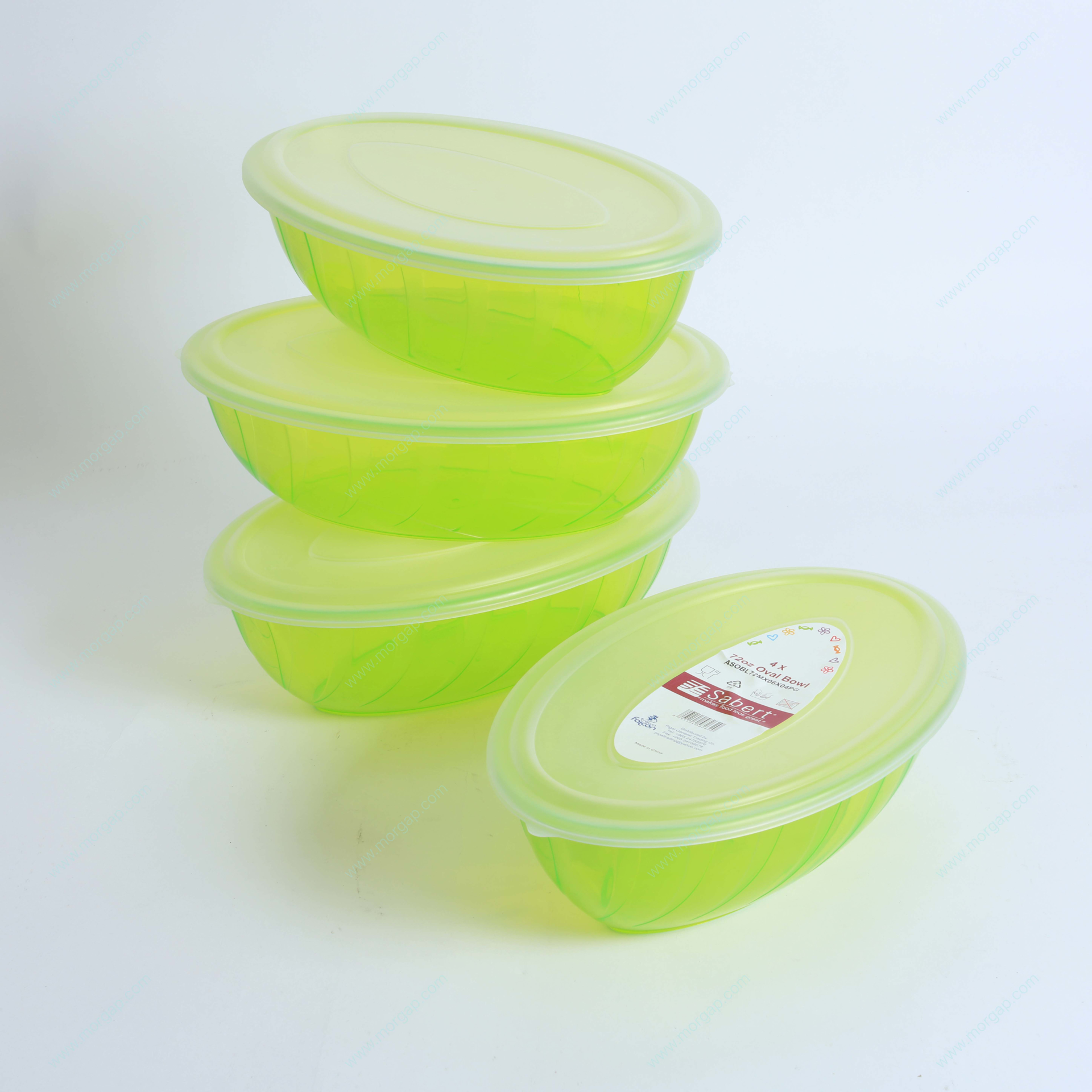 plastic transparent oval bowl 72 oz with cover green color 4 pcs