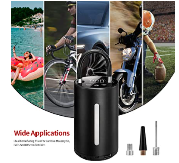 Rechargeable Air Pump with LCD Display for Car, Bicycle, Ball and Inflatable Tires, with LED Emergency Light