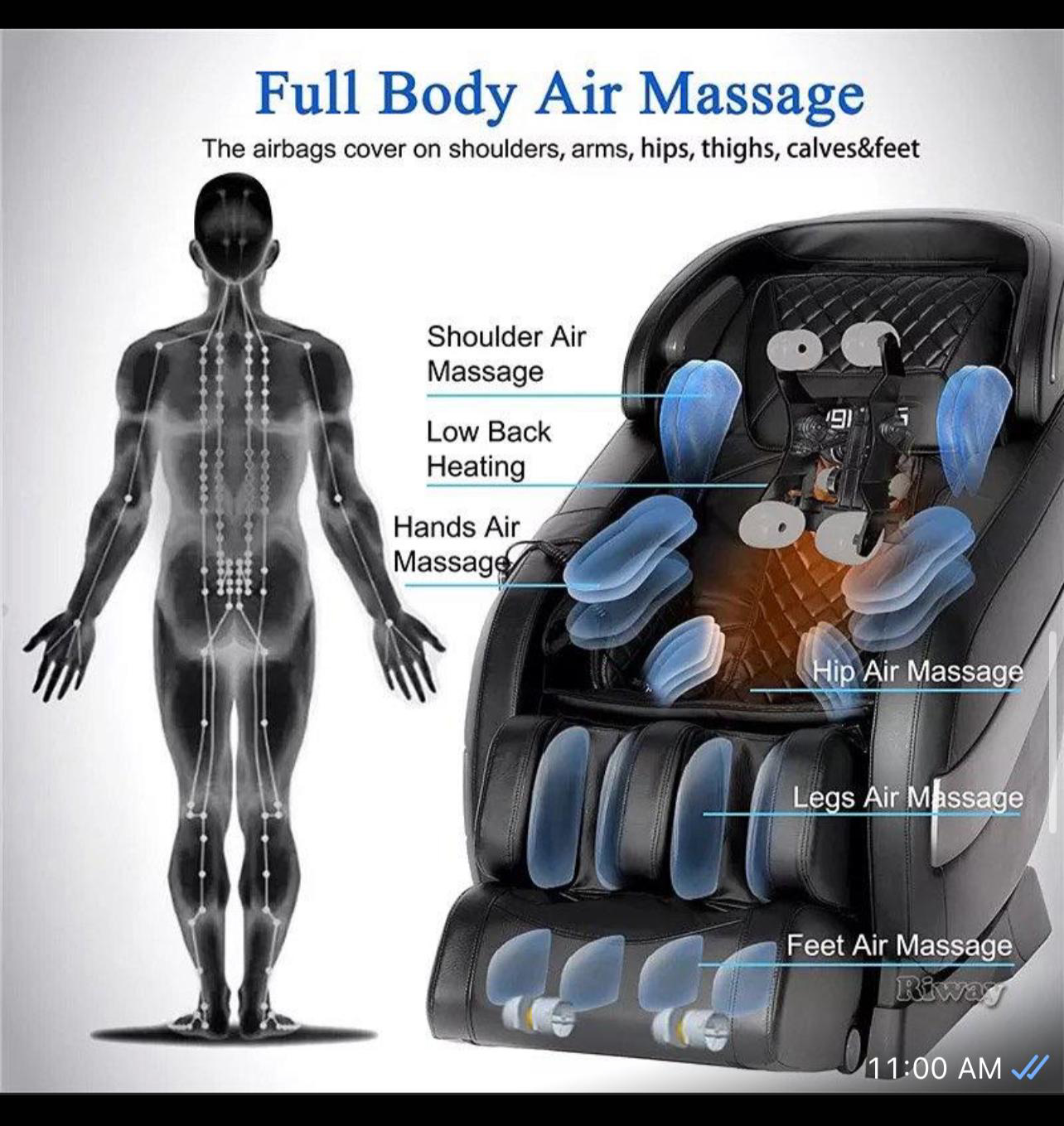 Feel tense and tired or exercise and need to relax your muscles? It is time for you to relax and relieve all tension. We offer you a full-body massage chair with the latest technology. 1- Full body massage 2- Synthetic leather compatible with the skin of the skin 3- Touch screen contro l 4- Height adjustable 5- Chinese heat therapy 6- Head massage that relieves pain 7- Bluetooth speaker Always stay relaxed