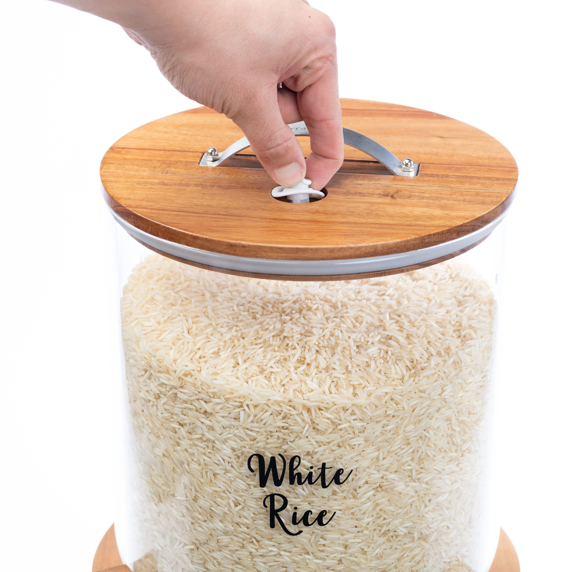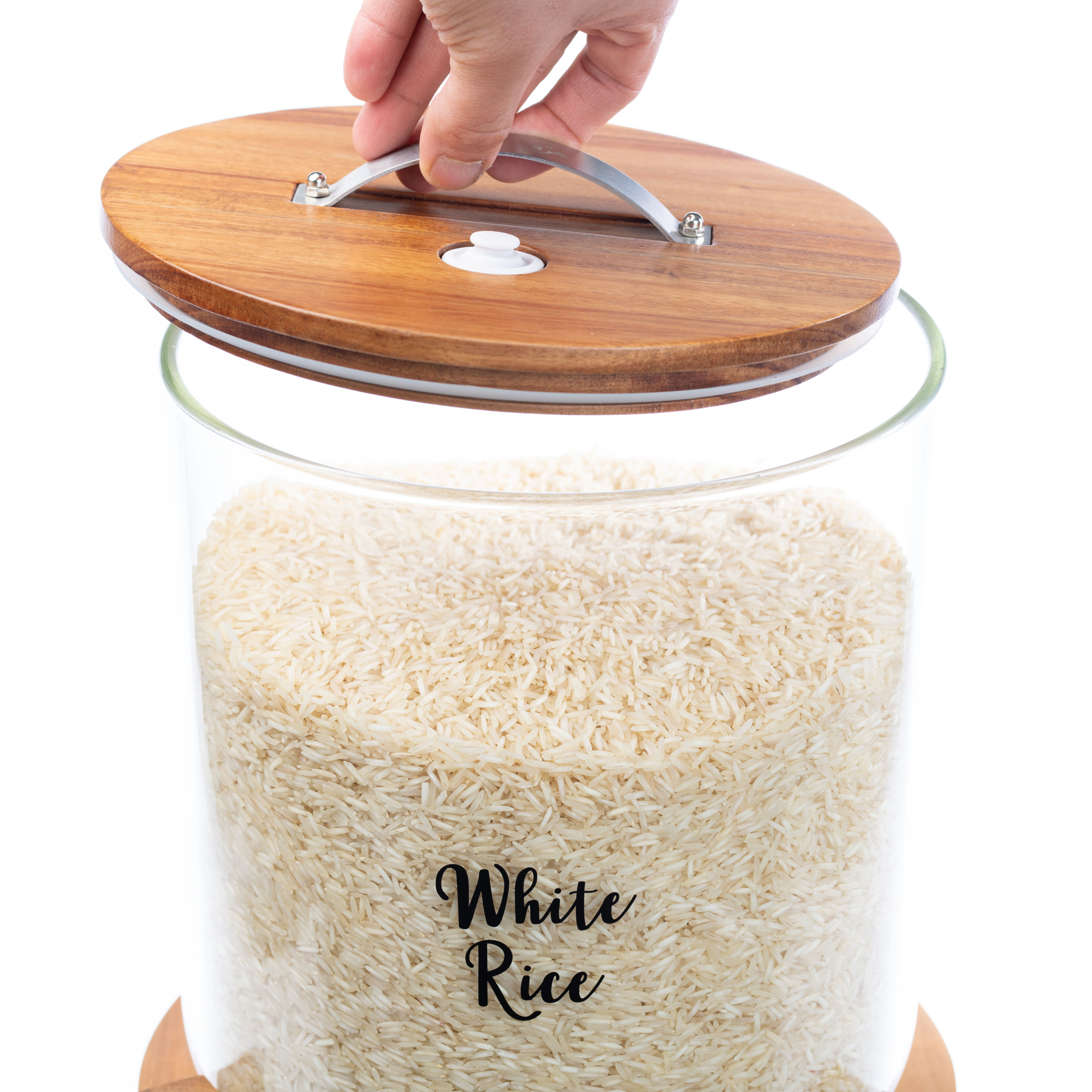 Glass storage container 9 kg with Acacia wood