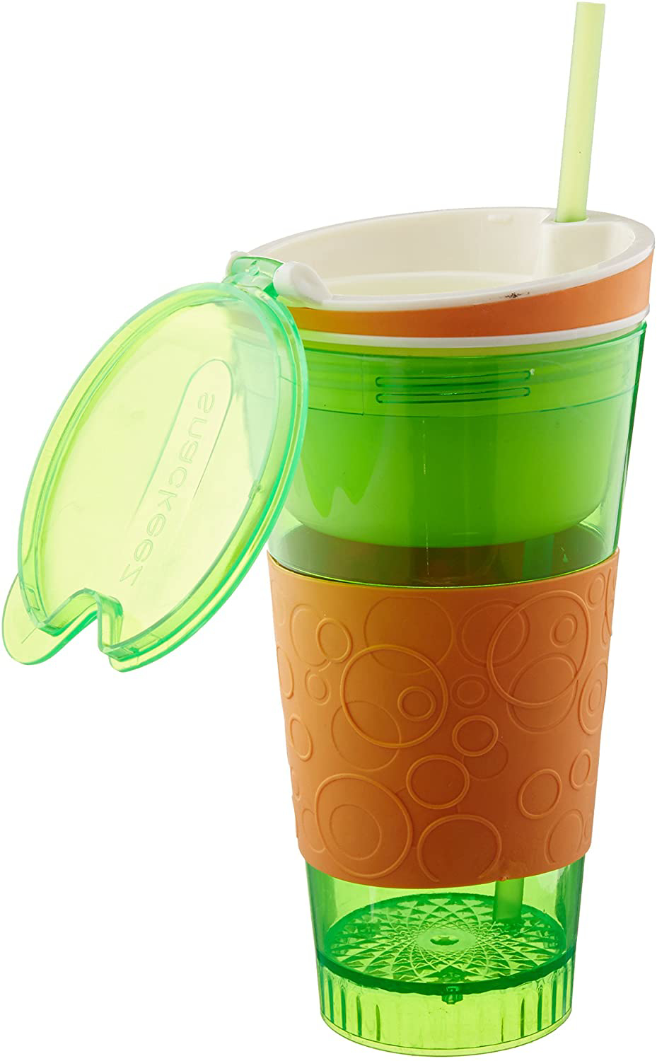Clever design lets you hold a 16 oz. drink and your favorite snack, all in one hand Seal perfectly to keep snacks fresh in the cup Dishwasher safe Great for snacking in the car, on the couch at home, and perfect for parties!
