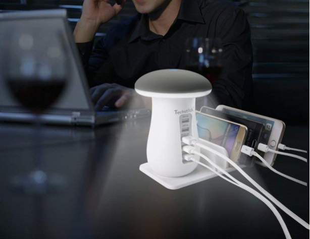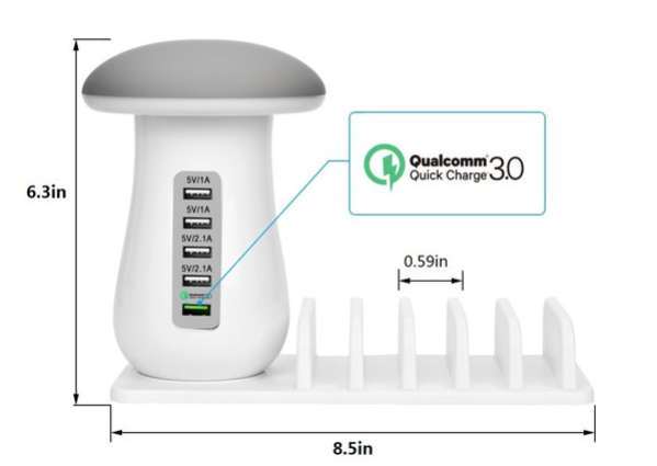 5 Port Quick Charger Desk Docking Organizer with 3.0 This compact USB charging station works smoothly with any USB-powered device such as iPad and Android Samsung Galaxy, tablets, smart speaker, power bank, Qi wireless charging pad This multiport usb charging station not only can be used as docking station, but also can be used as LED night lamp. Our Mushroom LED desktop Lamp with high-glossy surface and gives out soft light that won't hurt or strain your eyes.