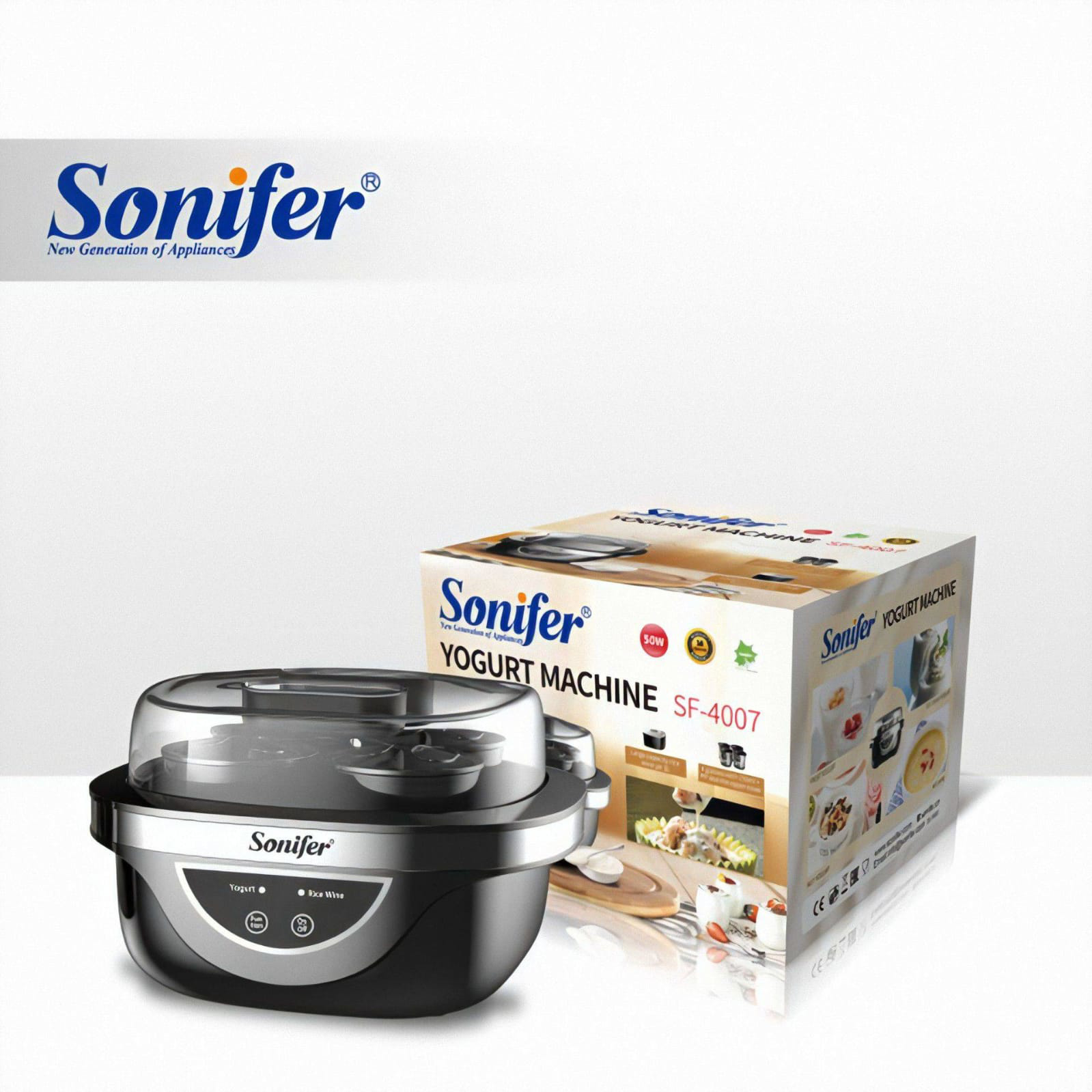 this electric yogurt maker produces a higher dose of probiotics It is healthier and more nutritious than commercial yogurt. Digital Automatic Yogurt Maker works on your counter-top to transform milk into regular yogurt in just a few hours. Size:7.6 x 7.6 x 7.3 inches. 20w Sonifer yogurt machine sf-4007 8pcs/ctn .led on .stainless steel housing .heating temperature 37c to 43 'c .large capacity rice wine jar 1l .rice wine and yogurt can be made .4 glasses each 150ml + pp seal the upper cover .automatic program ac 220-240v 50/60hz 50w Fast and easy to make fresh yogurt at home. Ideal for people of all ages who are looking to add the health giving benefits of live beneficial cultures into their diet. The entire process takes between 6 to 8 hours
