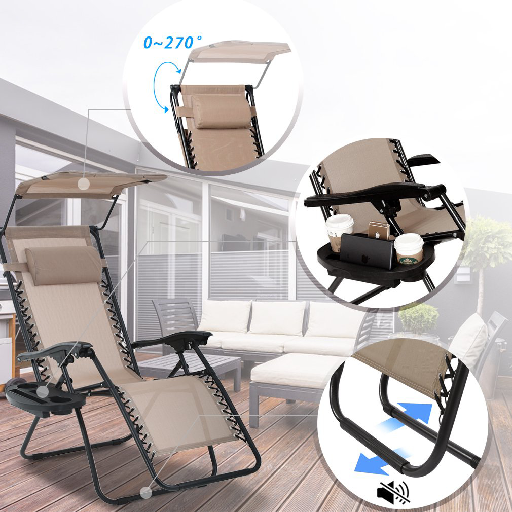 Zero Gravity Chair Lounge Patio Chairs with canopy Cup Holder